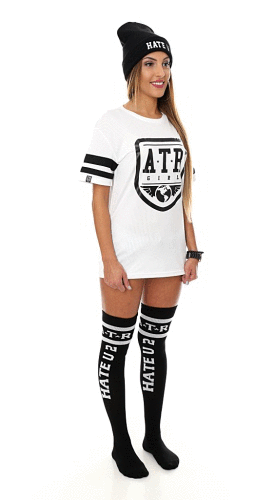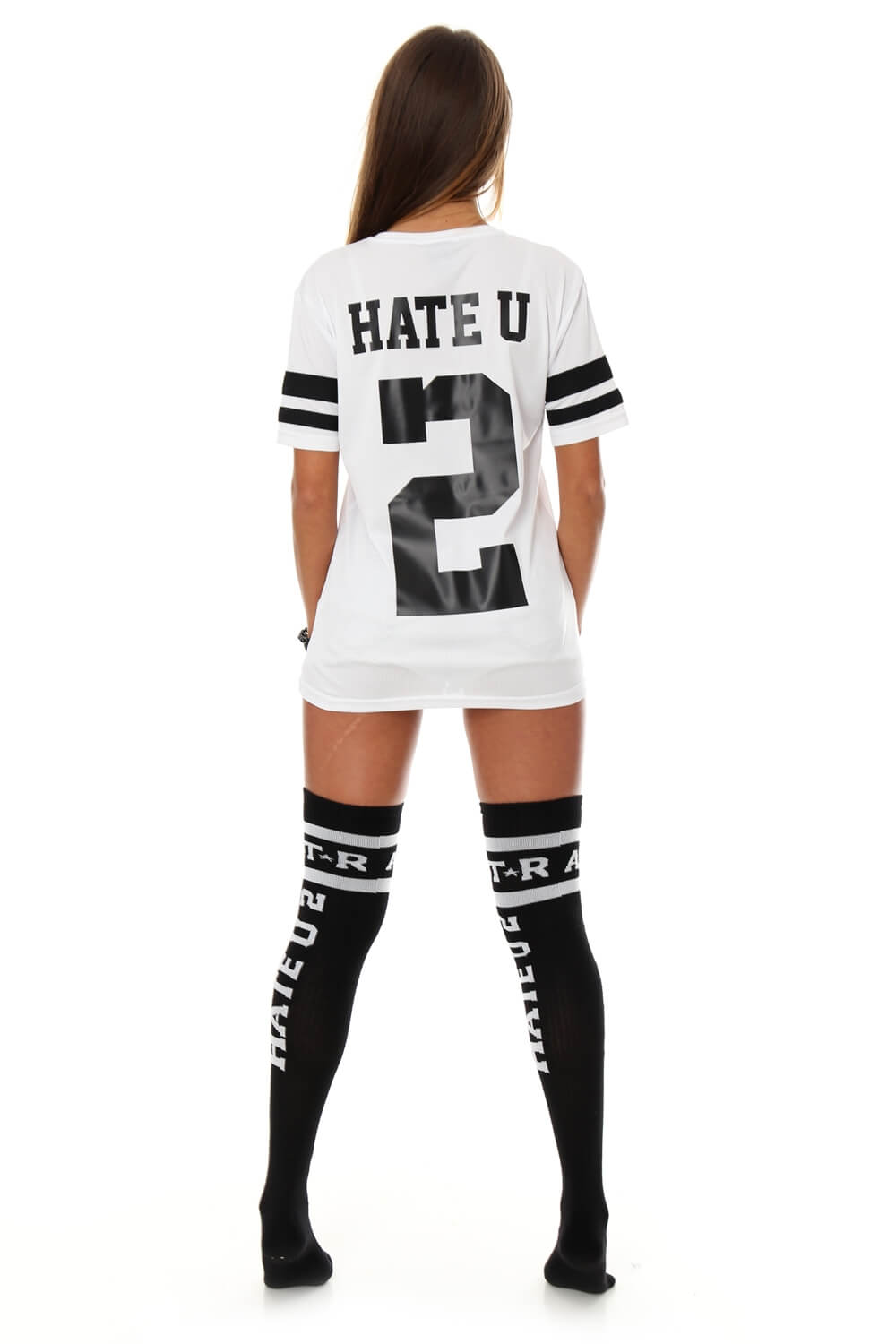 Biała futbolówka ATR WEAR z dużym napisem HATE U 2 na plecach. Luźna koszulka o sportowym charakterze wykonana z delikatnego meshu .