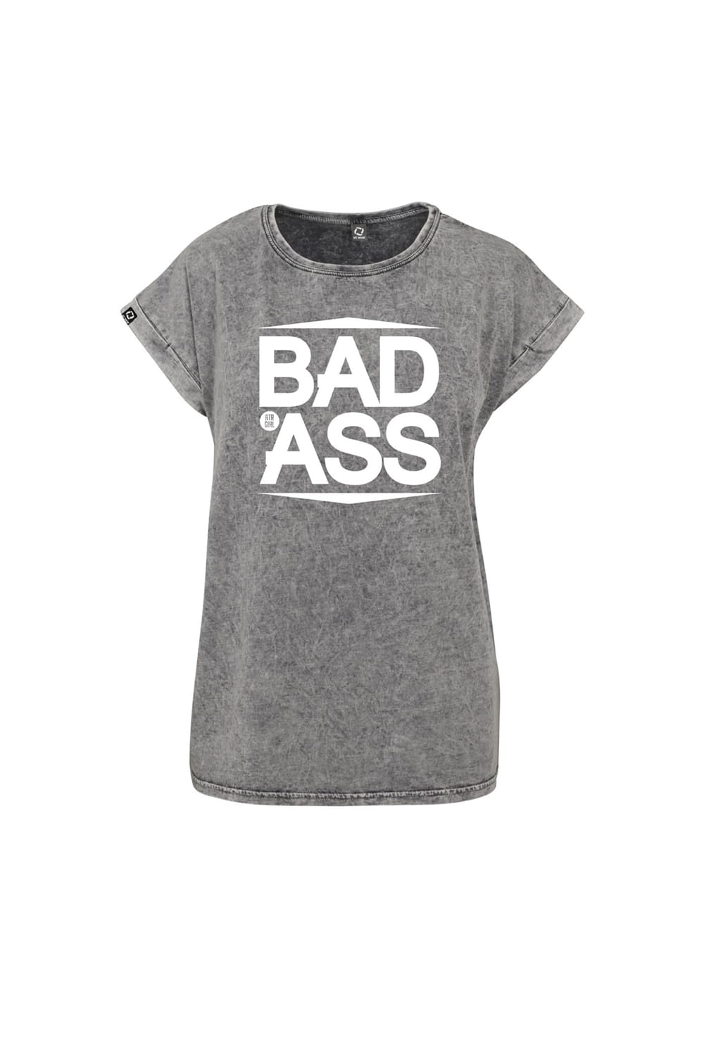Szary t-shirt damski z efektem sprania z kultowej serii BAD ASS .